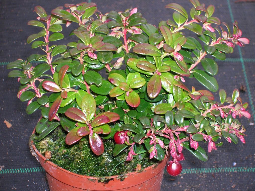 Unsere einheimische Preiselbeere ist immergrün, ca. 20 cm hoch mit